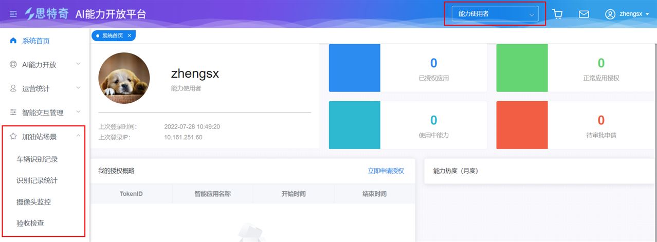 - 进入 http://10.31.9.120:10102/#/common/index ,点击 控制台,单点登录进入。默认角色是使用者,有车辆识别相关菜单。